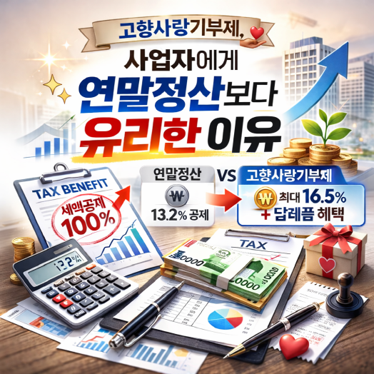 [핵심 요약] 고향사랑기부제는 개인사업자와 직장인 모두 활용할 수 있는 제도로, 연말정산보다 직접적인 세액공제 혜택을 제공하며 답례품까지 받을 수 있어 실질적인 절세 효과와 만족도를 동시에 얻을 수 있습니다.