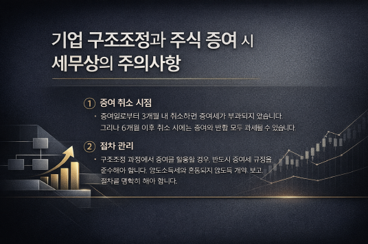 - 구조조정 과정에서 증여를 활용할 경우, 반드시 증여세 규정을 준수해야 합니다.