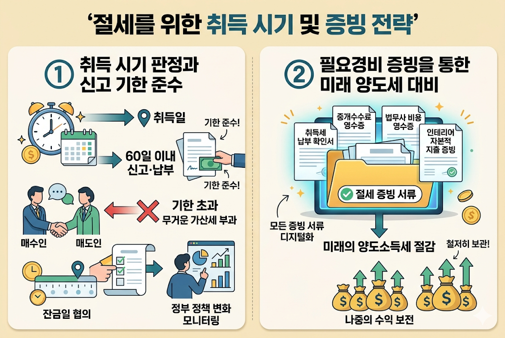 5️⃣ 절세를 위한 취득 시기 및 증빙 전략