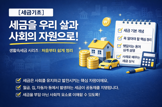 따라서 이번 시리즈는 생활 속에서 직접 체감할 수 있는 세금을 중심으로 구성했습니다. 독자들이 실제로 경험하는 상황을 바탕으로 세금의 구조와 의미를 설명하면, 단순한 지식 전달을 넘어 실질적인 이해와 공감을 이끌어낼 수 있습니다. 또한 마지막에는 세금이 사회적으로 어떤 역할을 하는지까지 확장하여, 개인의 부담을 넘어 공동체적 가치로 연결되는 흐름을 보여주려 합니다.