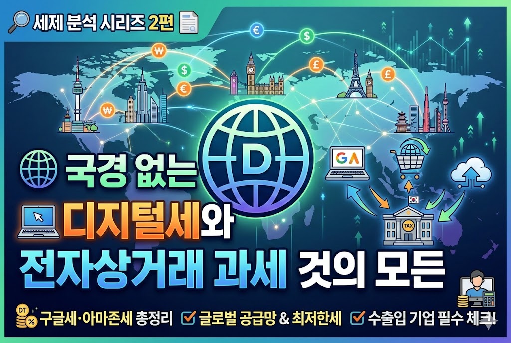 디지털 경제의 확산으로 '고정 사업장' 없는 수익 창출이 보편화되면서, 구글·아마존 등 빅테크 기업을 향한 디지털세(Digital Tax) 논의가 뜨겁습니다. 본 편에서는 국가 간 조세 주권 전쟁의 핵심인 디지털 서비스세의 구조와 온라인 플랫폼 입점 업체가 반드시 알아야 할 글로벌 과세 동향 및 대응 전략을 입체적으로 분석합니다.