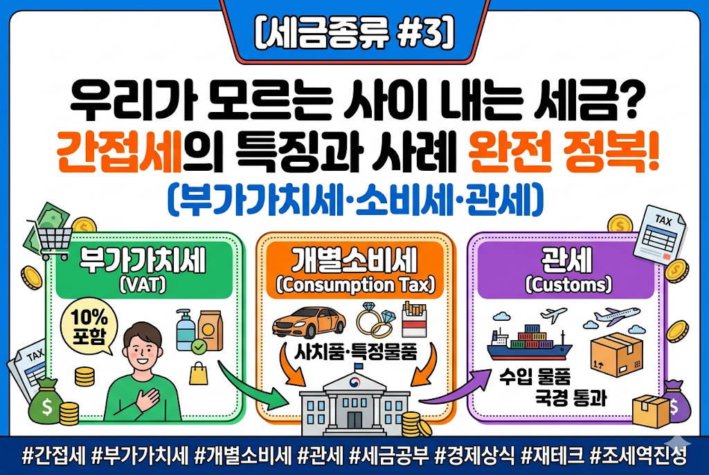 우리는 매일 세금을 내고 살지만, 정작 "오늘 세금 얼마 냈지?"라고 물으면 고개를 갸우뚱하곤 합니다. 월급에서 꼬박꼬박 나가는 소득세와 달리, 편의점에서 마시는 커피 한 잔, 쇼핑몰에서 산 옷 한 벌 가격 속에는 이미 세금이 녹아 있기 때문입니다. 이것이 바로 '간접세'의 마법이자 무서움입니다. 내가 세금을 내고 있다는 체감이 낮아 정부 입장에서는 돈을 걷기 좋지만, 서민들에게는 오히려 더 무거운 짐이 될 수도 있는 간접세! 오늘은 우리 일상과 밀접한 부가가치세부터 고가의 사치품에 붙는 소비세, 그리고 국경을 넘을 때 발생하는 관세까지 간접세의 모든 것을 파헤쳐 보겠습니다.
