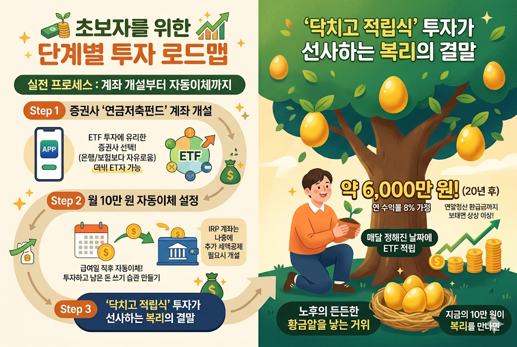 매일 마시는 커피 한 잔, 한 달이면 약 10만 원이죠. 이 돈을 일반 주식 계좌에 넣느냐, 아니면 '절세 요새'인 연금 계좌에 넣느냐에 따라 20년 뒤 여러분의 계좌 앞자리는 완전히 달라집니다. 주식 투자에서 가장 무서운 적은 하락장이 아니라 내 수익을 갉아먹는 '세금'입니다. 배당소득세 15.4%를 아껴서 재투자하는 것만으로도 복리의 마법은 폭발합니다. 오늘은 월 10만 원으로 시작하는 똑똑한 ETF 투자법을 공개합니다.