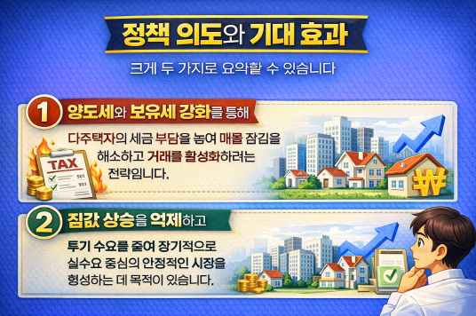 양도세와 보유세 강화는 매물 잠김 현상을 해소하기 위한 전략입니다. 다주택자가 세금 부담을 느끼면 자연스럽게 시장에 매물을 내놓게 되고, 이는 거래 활성화로 이어질 수 있습니다.