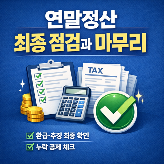 [핵심 요약] >연말정산은 단순한 환급 절차가 아니라 한 해 재정을 점검하고 미래를 준비하는 과정입니다. 최종 점검과 마무리 단계에서 공제 누락을 방지하고 환급금을 효율적으로 활용하면 절세 효과와 재정 안정성을 동시에 얻을 수 있습니다.