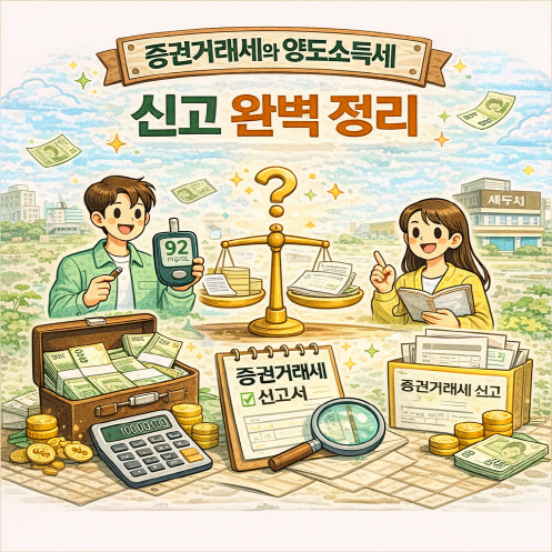 [핵심 요약] 증권거래세는 주식 매도 시 자동으로 부과되는 세금이며, 양도소득세는 매매 차익 발생 시 본인이 직접 신고해야 하는 세금입니다. 두 세금은 과세 대상과 신고 방식이 달라 투자자는 반드시 구분해 이해해야 합니다.