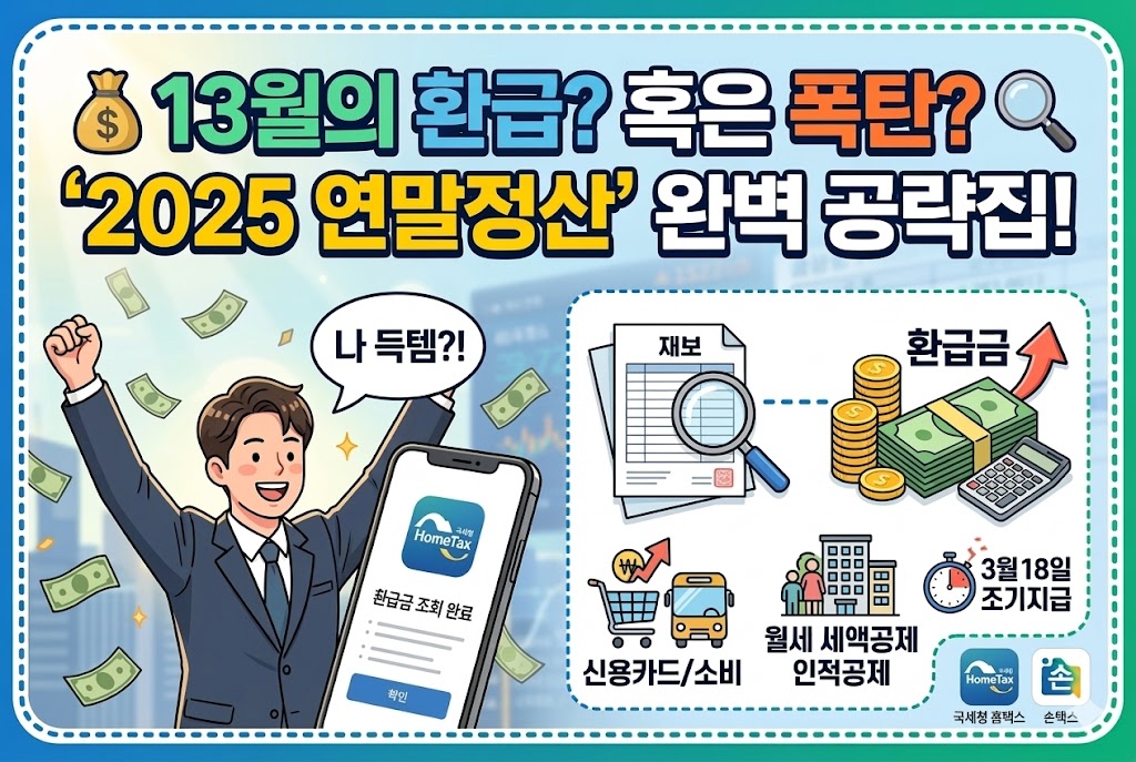 "올해는 얼마나 돌려받을 수 있을까?" 직장인들의 연초 최대 관심사는 단연 연말정산이죠. 누군가에게는 가슴 설레는 '보너스'가 되지만, 준비가 부족했던 누군가에게는 쓰라린 '추징금'이 되기도 합니다. 특히 2026년 현재 지급되는 2025년 귀속분은 물가 상승을 반영한 각종 공제 한도 변화와 디지털 서비스 고도화로 그 어느 때보다 확인해야 할 점이 많아졌습니다. 복잡한 세무 용어 때문에 머리가 아프셨나요? 걱정 마세요! 사용자님이 선호하시는 '세금' 스타일의 가이드로 무엇을 챙겨야 할지 핵심만 콕콕 집어 정리해 드립니다. 🏃♂️💨